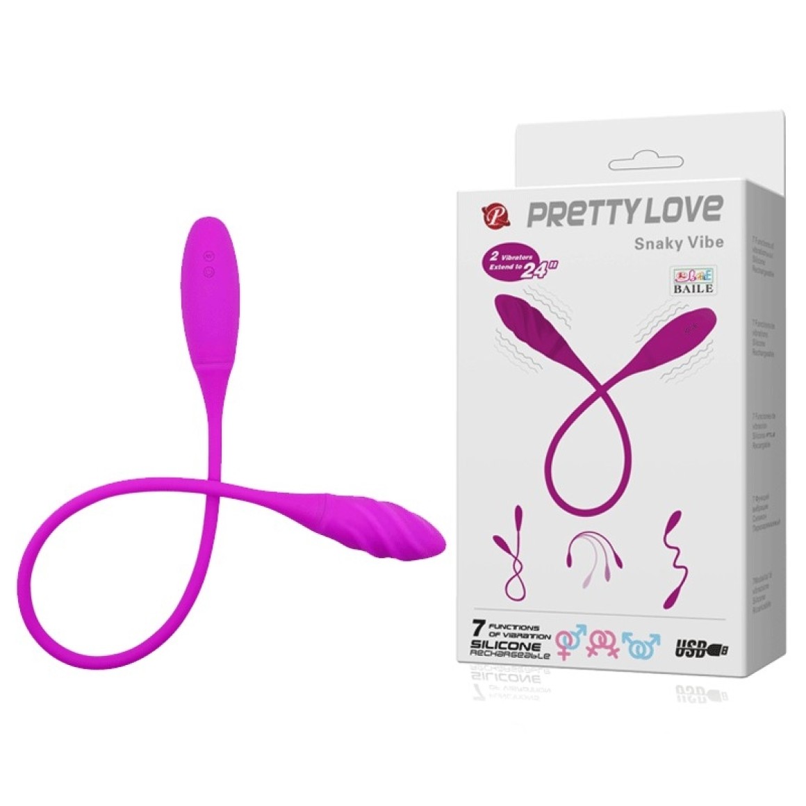 Vibrador duplo em silicone, cada extremidade contém um vibrador com 7 modos de vibração. As extremidades possuem formato de ogiva, característica que confere suavidade e conforto durante a penetração. Uma das extremidades possui relevo em espiral a outra extremidade é totalmente lisa, possui os botões de comando de liga/desliga.