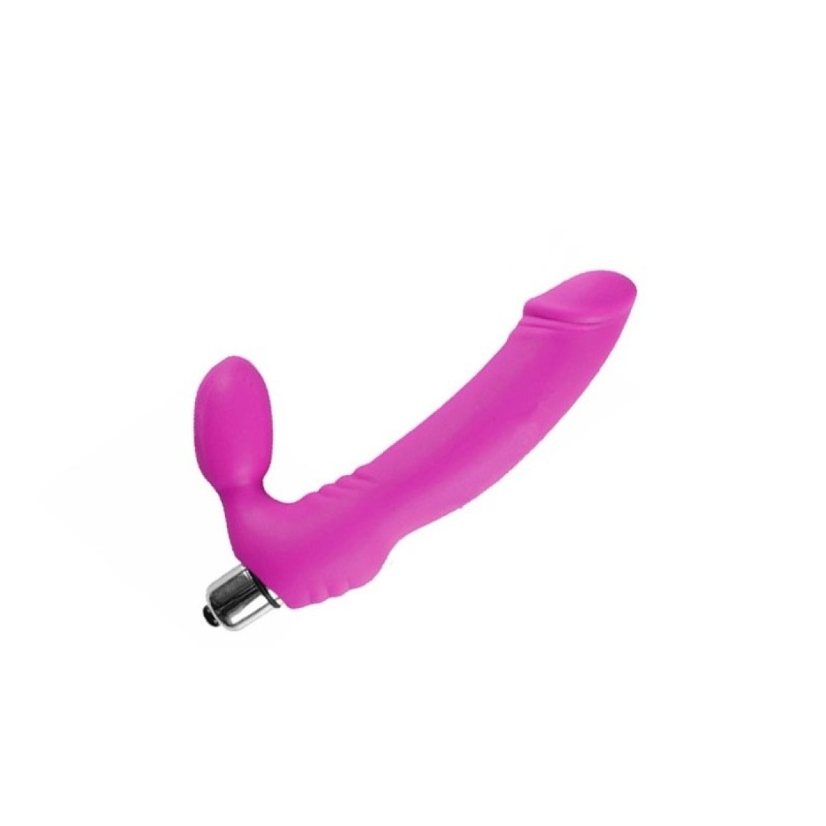 Penetrador com plug vaginal com glande e plug vaginal, permite o uso sem cintas. Possui cápsula vibratória com 1 vibração.