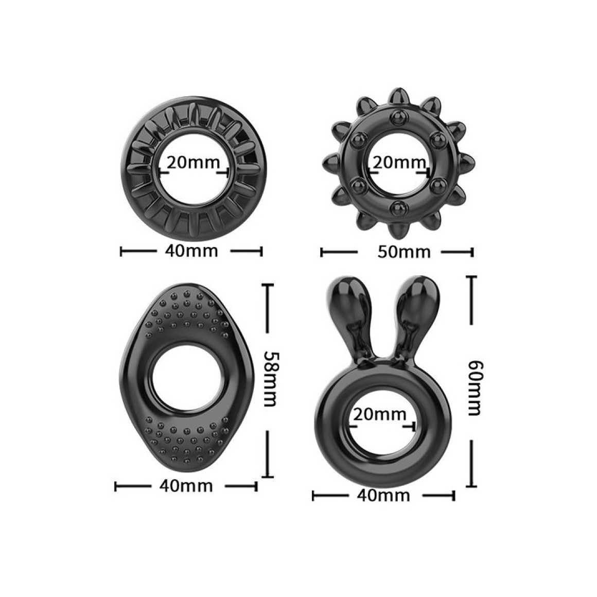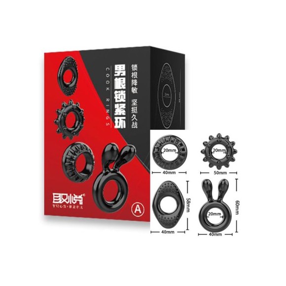 O Kit com 4 anéis penianos da Love Nest é ideal para homens que desejam manter uma ereção prolongada e aguentar por mais tempo uma maratona de sexo. Desenvolvido em quatro tamanhos e designs diferentes, estes anéis se ajustam facilmente à base de seu pênis e também pode ser usado para prender o escroto, mantendo a ereção por mais tempo. Escolha o seu favorito e divirta-se!