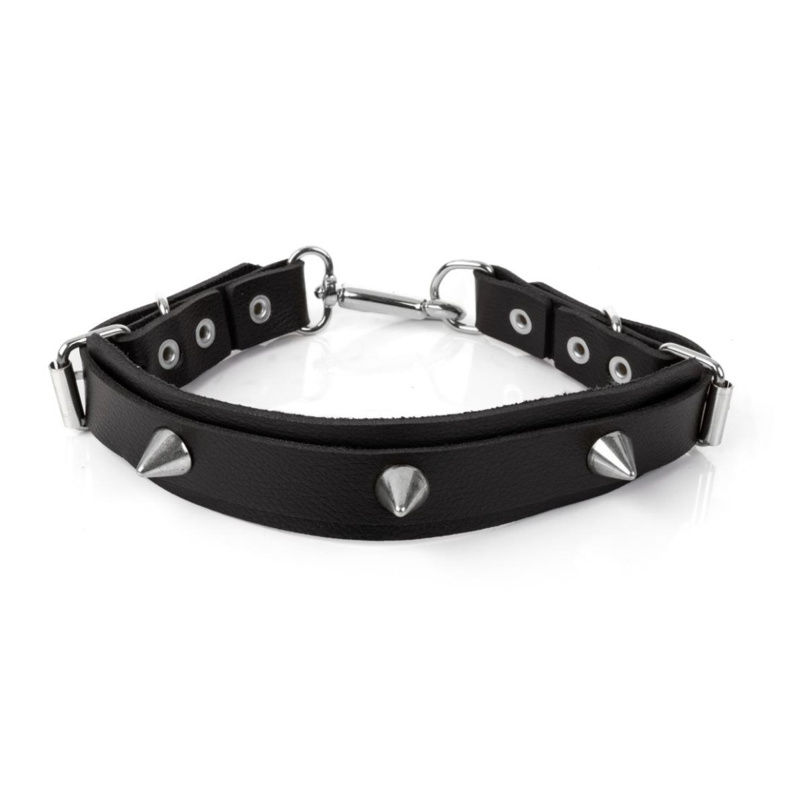 O charme dessa gargantilha fica por conta dos spikes em metal niquelado tornando a peça ousada, diferente e com visual extremamente fetichista. Possui fivelas de regulagem que permitem que o acessório fique ajustado de acordo com sua medida.