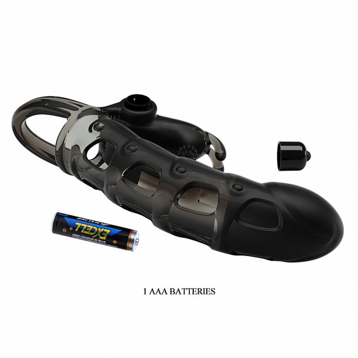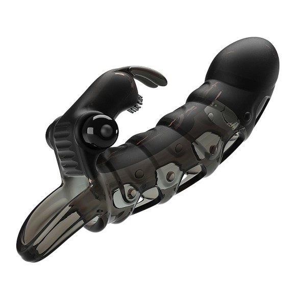 Capa peniana emborracha ultra macia e flexível, possui glande e uma textura salientes ao longo do corpo, trazendo maior sensação de prazer durante a penetração. 10 modos de vibração, com estimulador de clitóris.
