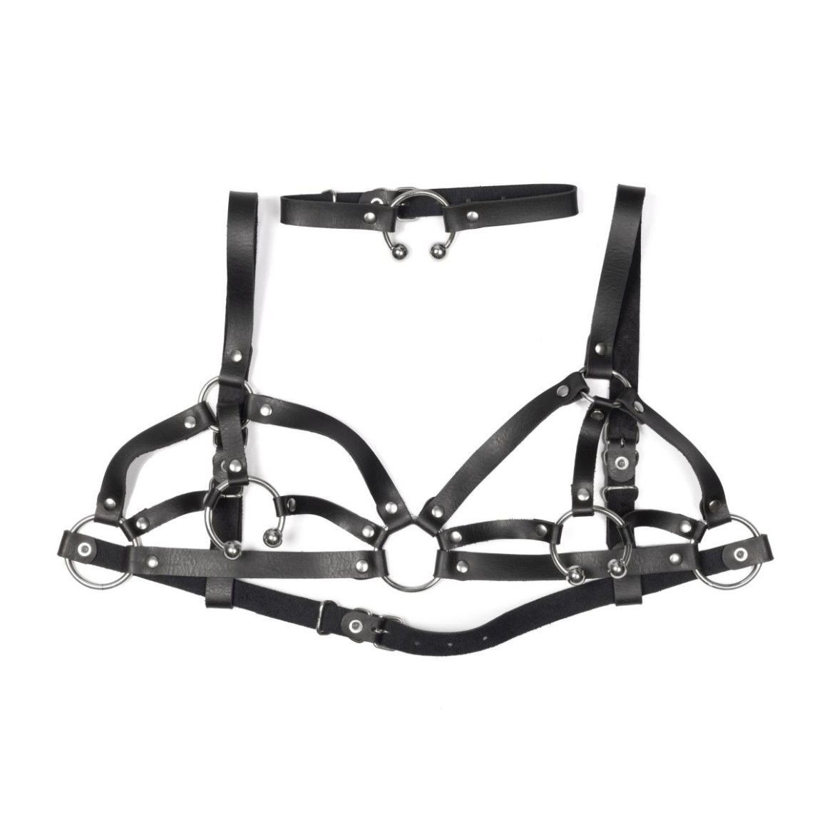 O Harness Perséfone com Argolas Abertas é um luxuoso acessório para o peito, muito semelhante a um top, com detalhes em tiras envolvendo todo o peito e argolas abertas ao redor dos mamilos.