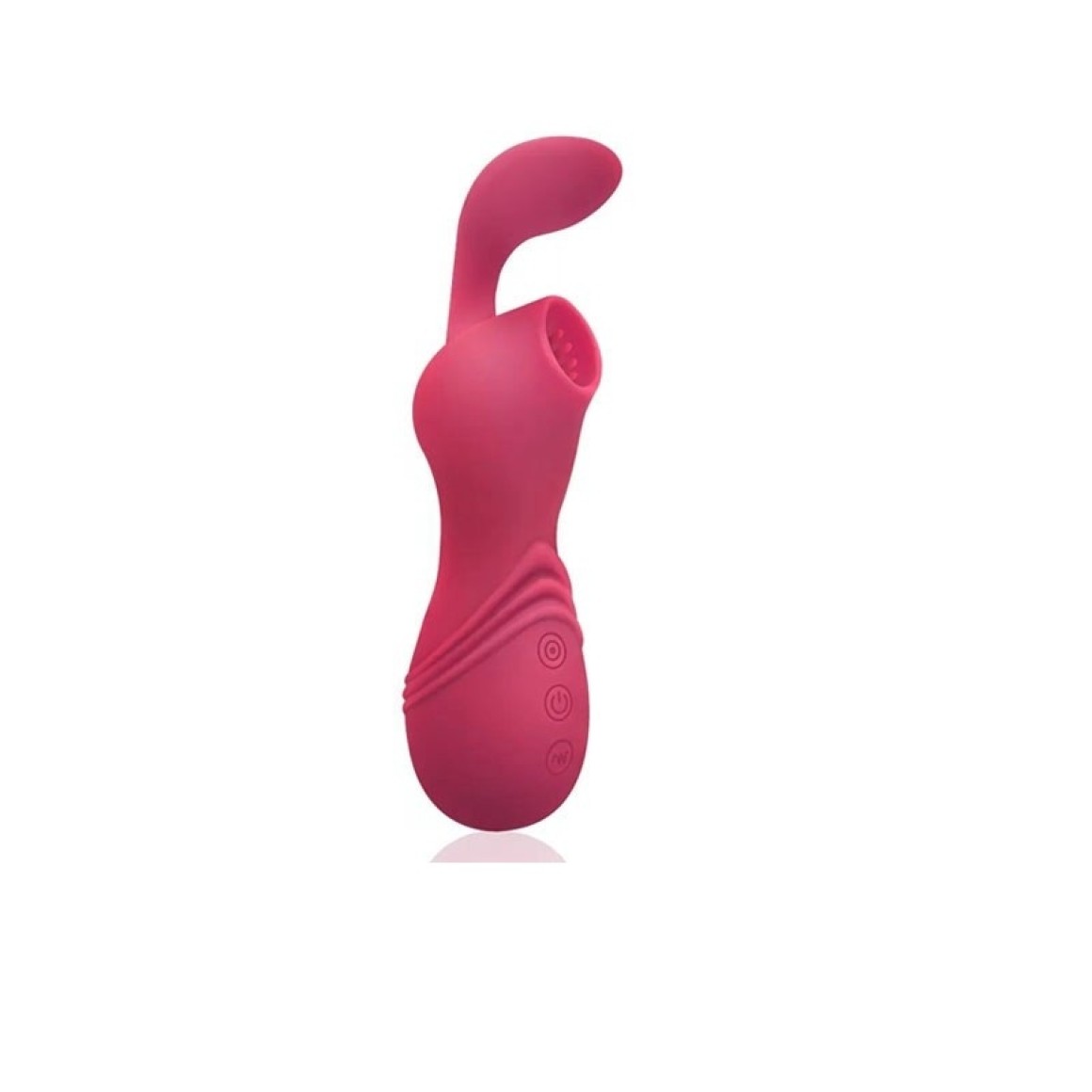 Estimulador recarregável com sucção e vibração formato coelho, possui 12 modos de vibração e 12 modos de sucção.