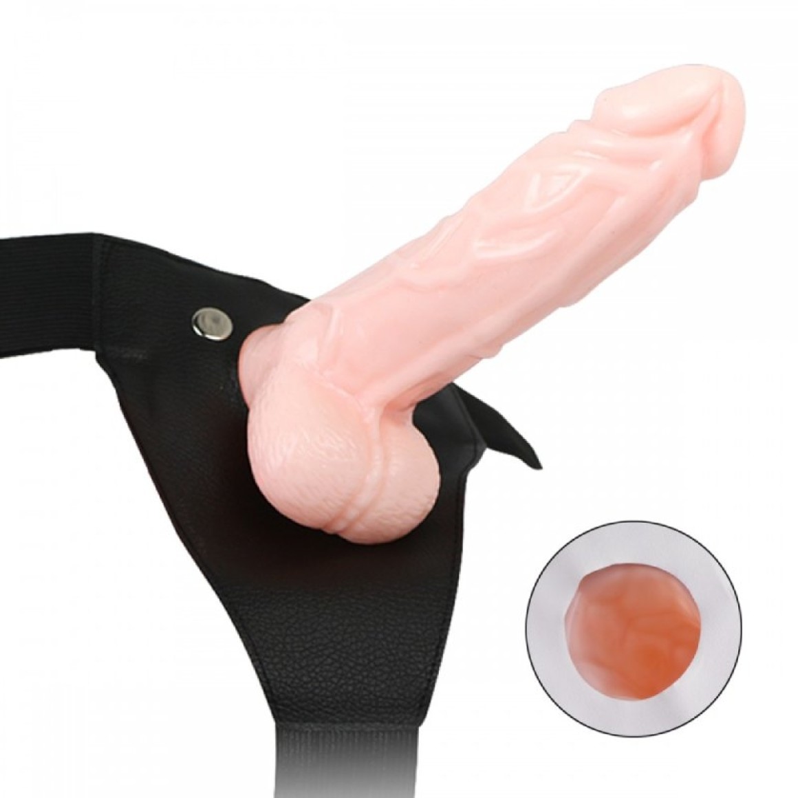 Cinta peniana, com capa peniana realista. Formato de pênis com alça elástica, que se adapta a qualquer grossura de perna e quadril. Pênis possui veias realísticas, que aumenta o prazer e glande definida. Ótima opção para ter muito prazer. Medidas aproximadas: 14x4x17,5 cm. Peso: 120g. Material: PVC.