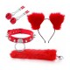 Kit fox composto por 1 tiara de pelúcia + 1 plug anal com cauda em pelúcia + 1 par de grampos para seios em metal com presilhas ajustáveis com guizo na ponta + coleira com coração vazado em metal + máscara de fantasia sensual com strass e flor.