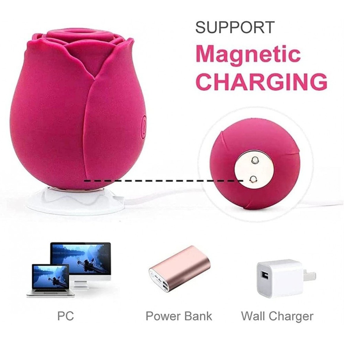 Massageador em forma de rosa moderno e bonito, sensação suave, cheio de elasticidade.