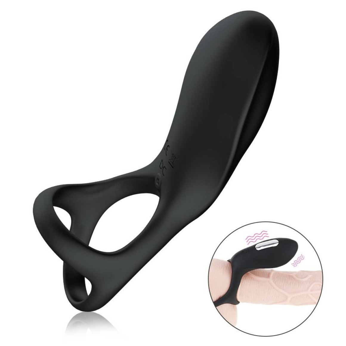 Anel peniano e testículos em silicone com estimulador clitoriano por vibração
