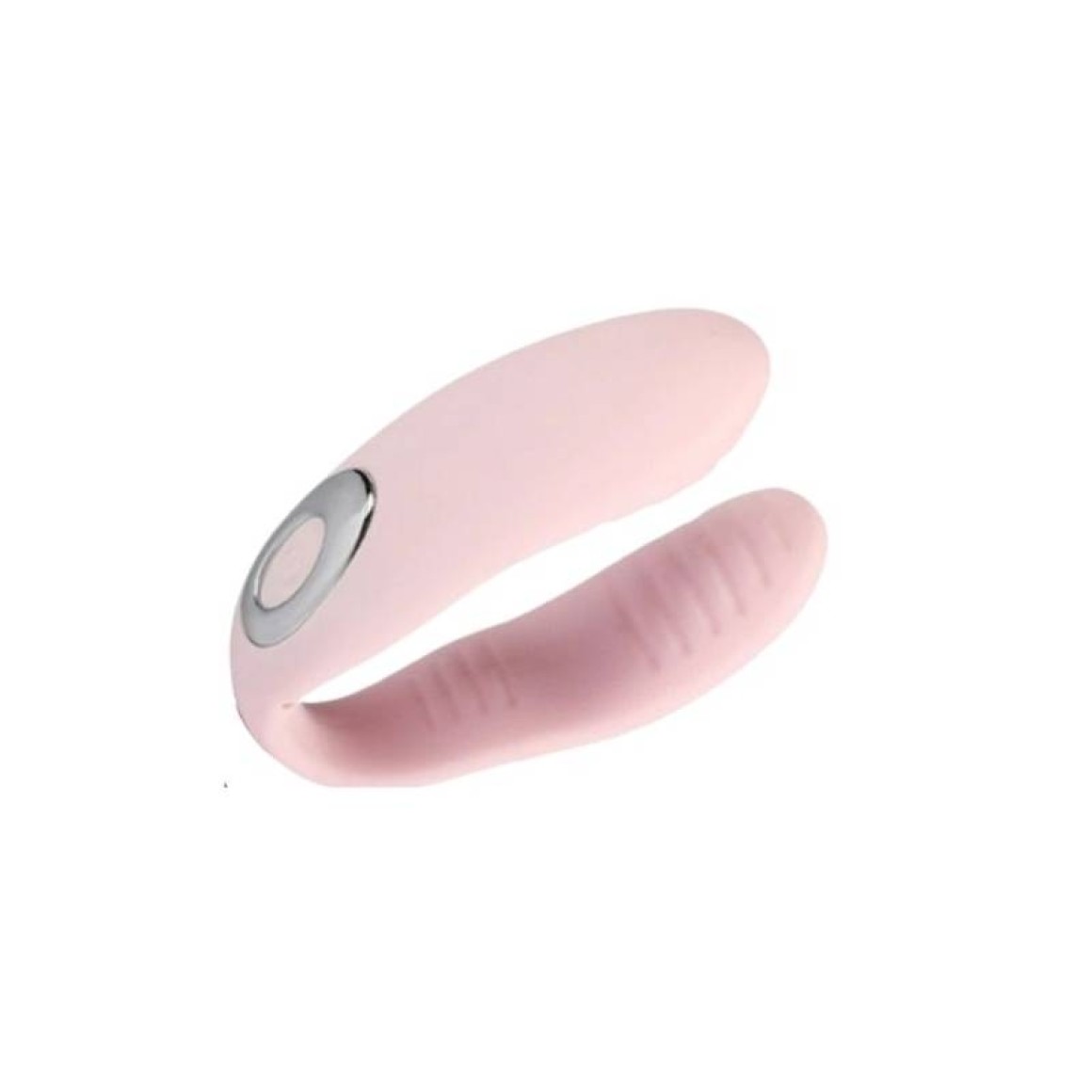 Vibrador casal com formato anatômico em C flexível, toque suave, aveludado e estimulador clitoriano com vibração.