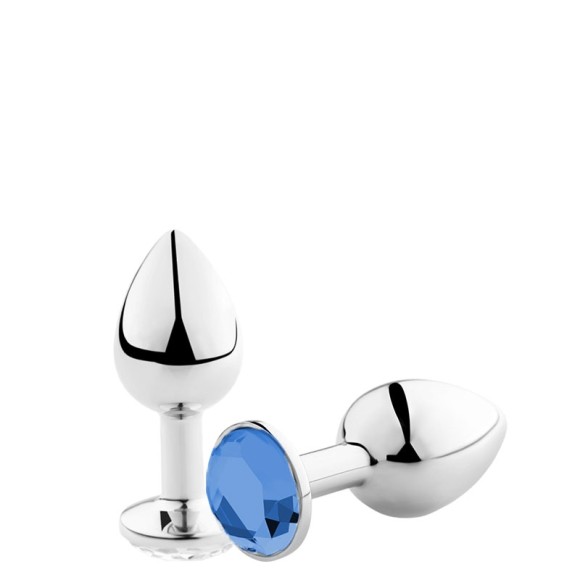 Plug anal em alumínio, médio, com aplicação de uma pedra colorida em sua base.