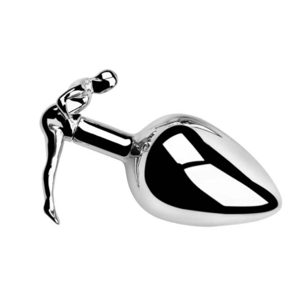 Plug anal de aço com formato cônico e formato de um corpo na base.