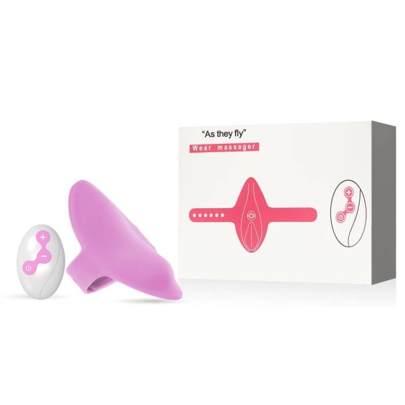 Vibrador recarregável com tiras para calcinha. Possui 10 modos de vibração e controle remoto.