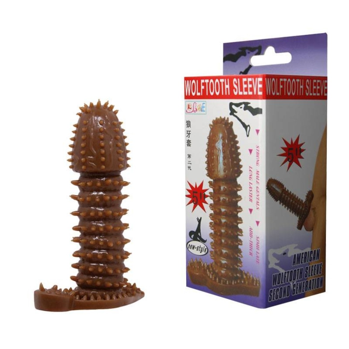 Capa peniana extensora com textura anelada e nódulos massageadores.
