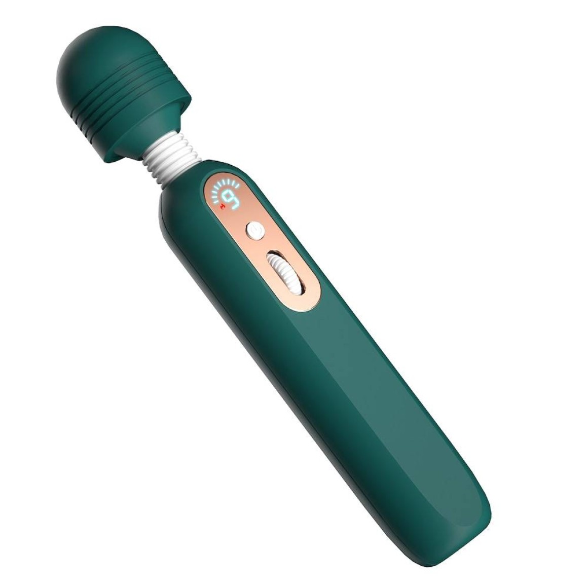 Vibrador tipo varinha mágica. Ideal para massagear e estimular, clitóris, seios e aliviar a tensão.Estimulador possui 9 Modos de vibração e e 10 intensidades,confeccionado em silicone na Ponta oferece um toque macio e suave além de segurança,à pele por ser um material atóxico corpo em plastico com Visor digital.